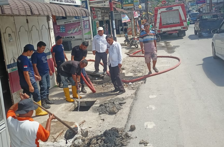 Rabu, 28 Mei 2025 | Normalisasi Saluran Jalan D.I Panjaitan Kecamatan Tarutung. Pada Pekerjaan ini melibatkan beberapa perangkat daerah Kabupaten Tapanuli Utara yaitu Dinas PUTR, Dinas Pemadam Kebakaran, Camat Tarutung, Lurah dan PDAM.