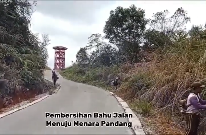 Pekarya Jalan Dinas PUTR melakukan Pembersihan Bahu Jalan Menuju Tempat Wisata Menara Pandang