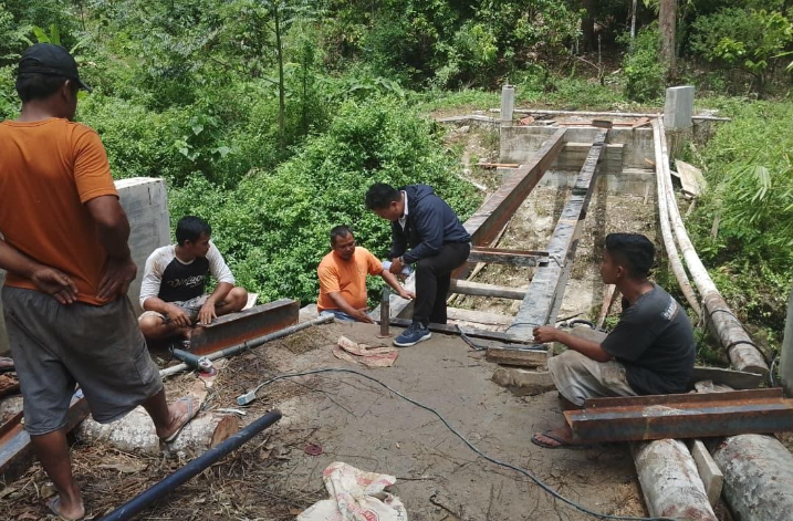 Pekerjaan pemasangan gelagar WF Jembatan Sipurikpurik Kecamatan Purbatua